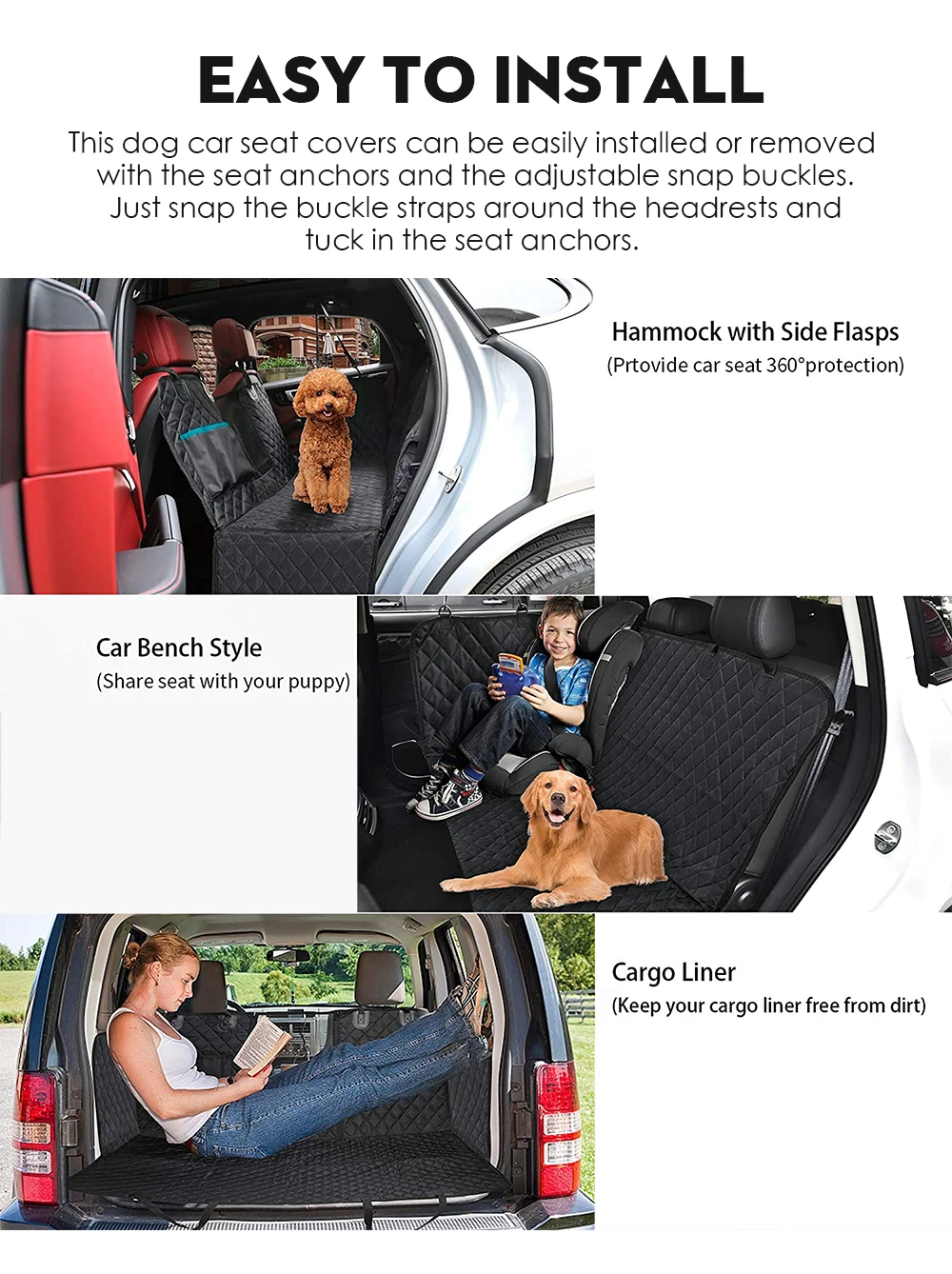 Coprisedile Auto per Cani, Antiscivolo, Impermeabile, Antigraffio, Telo Macchina per Sedili Posteriori e bagagliaio, con zipper e tasca per viaggi